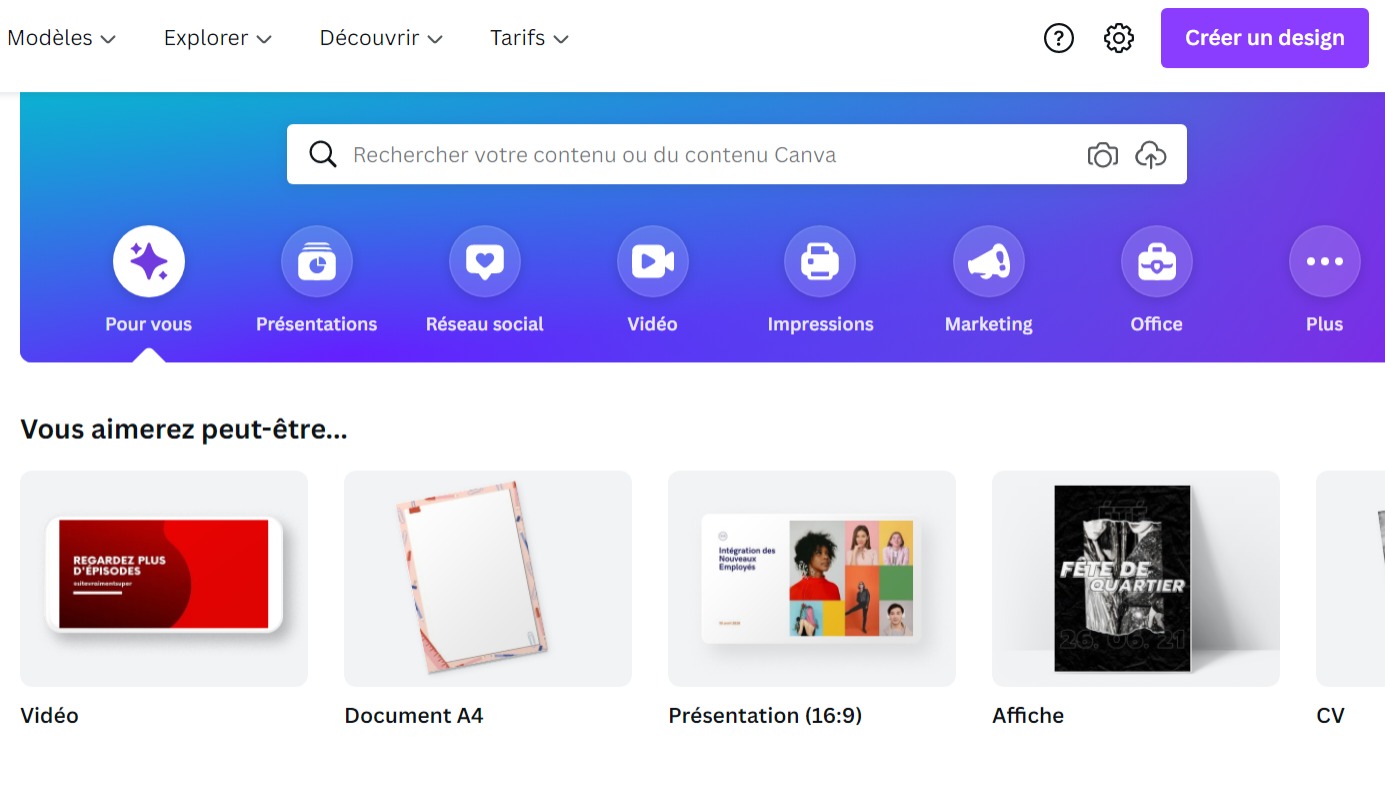 CANVA est un outil graphique qui permet aux utilisateurs de réaliser des logos, des invitations, des publications pour vos réseaux sociaux, des CV, des flyers et beaucoup d’autres choses. En choisissant CANVA, vous pouvez aussi bénéficier de divers outils en matière de vidéo, d’audio et d’animation.